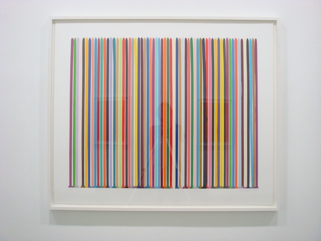 Ian Davenport, born in 1966 in Kent (GB), is one of the most important abstract painters of his generation in Britain, who are interested in the process of painting. Characteristic for his technique is pouring paint. He has been practising this method over the years, reaching a refined surface and image. Very thin lines and subtle colors are a result of the highly controlling hand and esthetic eye. Color becomes more and more the main subject in his work. His images derive from the act of pouring and range from arches, circles to lines.