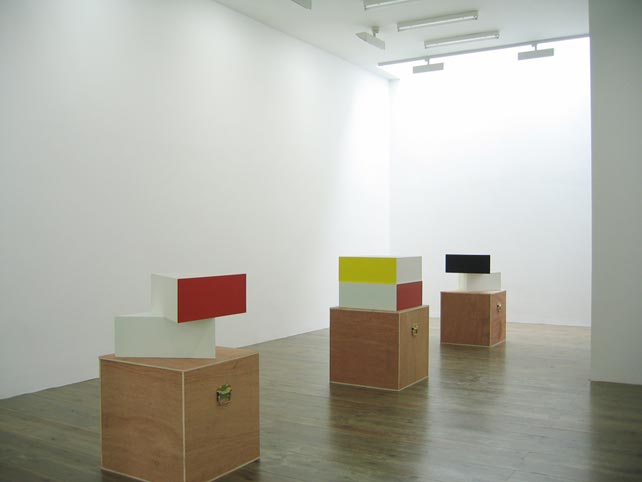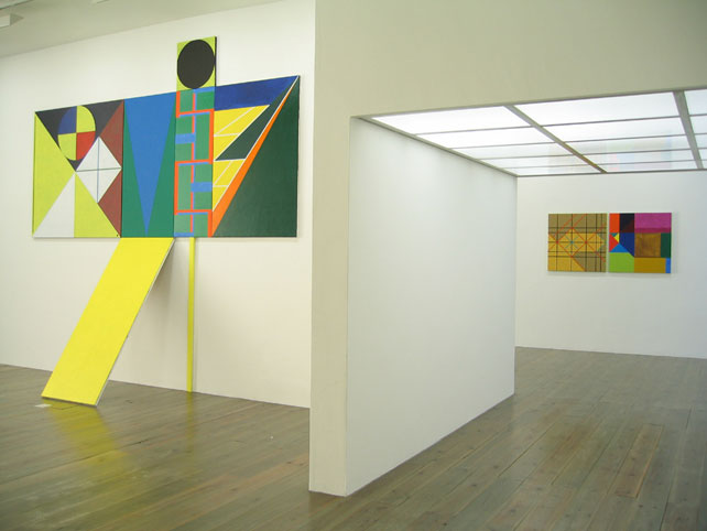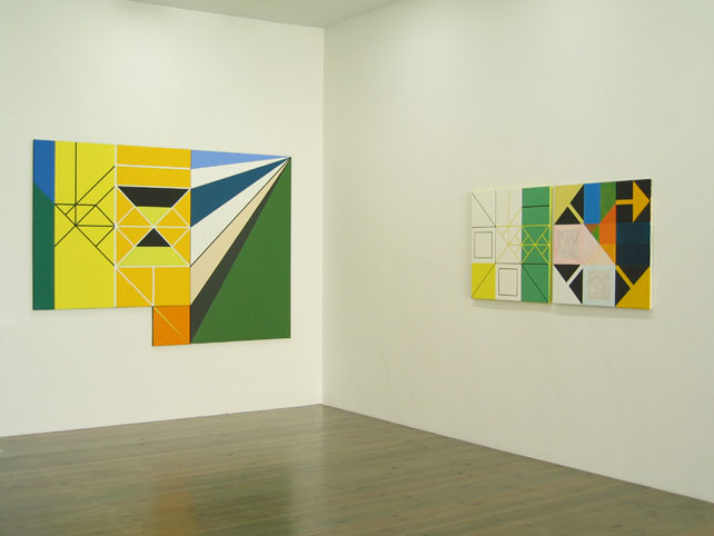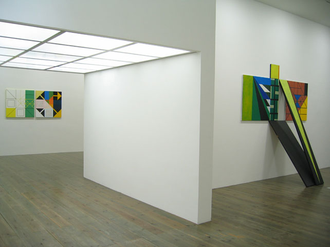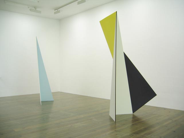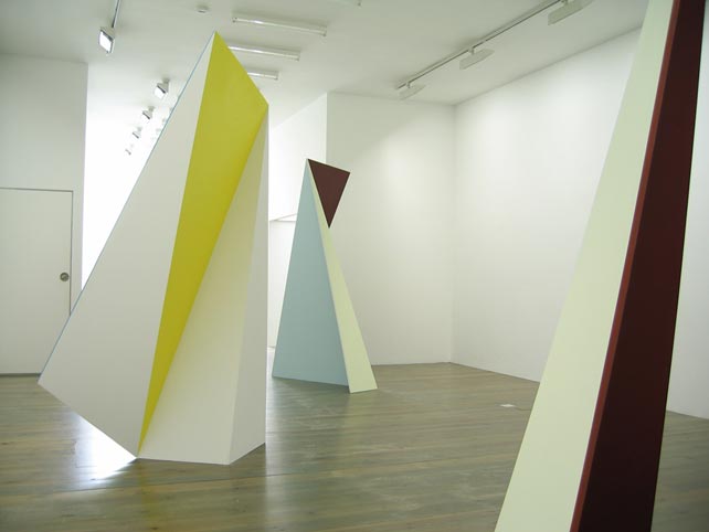 Gerwers, emerged with monumental geometric abstract paintings. He has recently extended his dicipline with 3-dimensional painted objects. Made out of triangular forms from wood they take the shape of dynamic pyramids, which define the surrounding space. His work is in the tradition of Mondrian and the American colourfield painting. Gerwers’ paintings and objects evoke space through big contrasts in light and dark, thin lines and broad planes of color and subtle differences in tone.