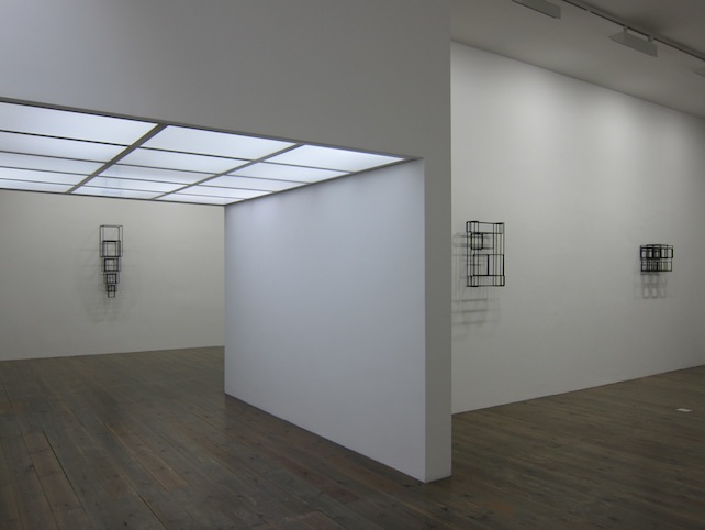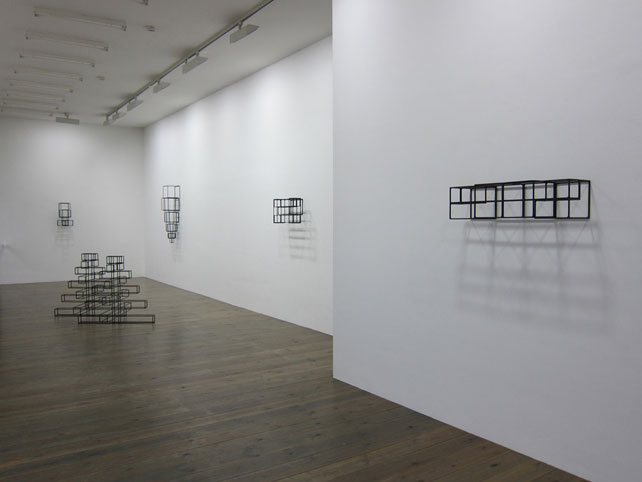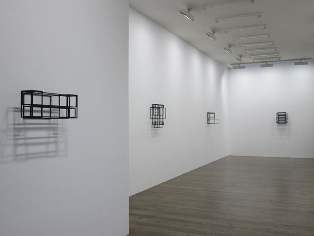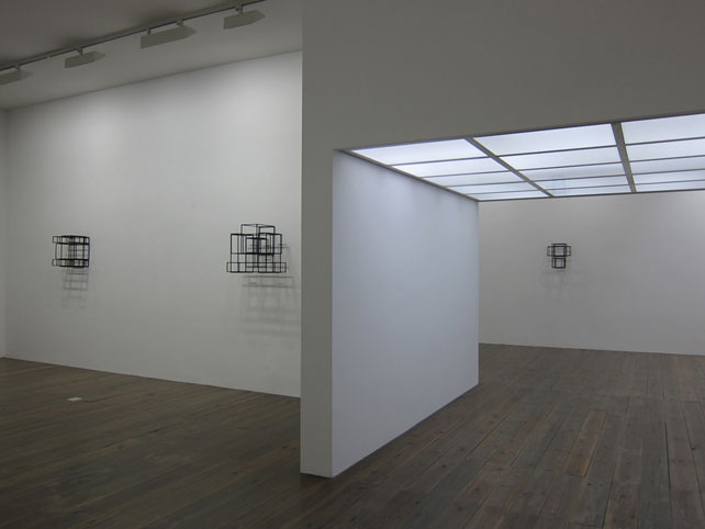Jacklin, known for his man-sized grid sculptures, made of iron, will exhibit a new series of wall objects, entitled The Hang Series, in which transparent boxes of thin staff iron are hanging in each other. They follow his previous series wall sculptures Stack, in which the principle of stacking was its subject. Also in these series a subtle play of lines and intervals occurs when you move around them.