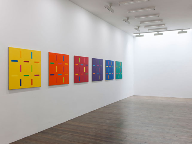 Slewe Gallery is pleased to announce the opening of the exhibition Spectrum by Steven Aalders (*1959, NL) from May 12 to June 16, 2012. It will comprise new series of paintings with the spectrum as subject. One is a six-panelled work of which each panel is painted in one of the six colors of the spectrum and serves as a background for another spectral range of 12 colors. In relation to their background these colors change in perception according to the principles of interaction of colors. As a motto for this exhibition Aalders chose the above mentioned fragment from a letter of Van Gogh, in which Vincent evokes his belief in a scientific approach of painting.