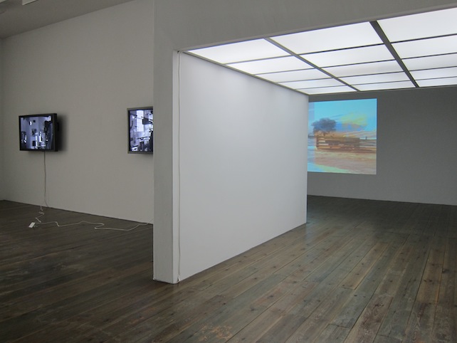 One video installation, entitled Fences & Pools (2012), originated as a result of her residency in Utah in the United States some years ago. Inspired by the bare desert-like scenery she connected the old Apocalyps text from the Biblical Book of Revelations with a native American mythological text and descriptions by an American scientific explorer in the Mid-West from the nineteenth century.