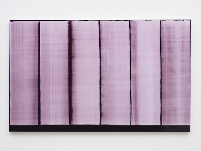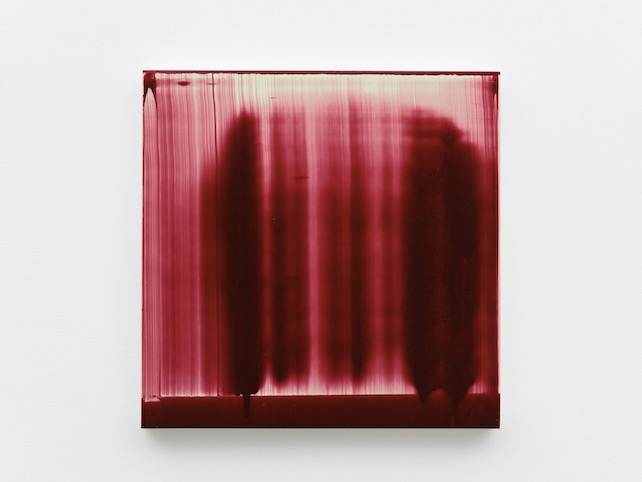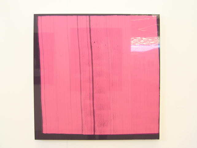 Peter Davis emerged as a young artist in a group of so-called ‘process painters’ in the early nineties. He is known for his shiny gloss paint paintings on aluminium or MDF. Recently he also paints on glass. Still shiny again, its image is more constructed and layered and gains more expressionist power. The long process of making these works does not show, as he is wiping of the traces of earlier attempts. His paintings look like they were made in one go.