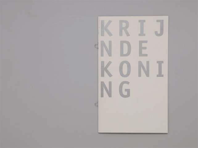 Krijn de Koning has been published by Veenman Publishers, Rotterdam with the support of Slewe Gallery, Amsterdam, Le Grand Cafee, Saint Nazaire, Galerie Serge Le Borgne, Paris, Fonds BKVB and the Sikkens Foundation. It came out at the occasion of the Sikkens Prize Krijn de Koning received in 2007, giving an overview of more than 15 years work.